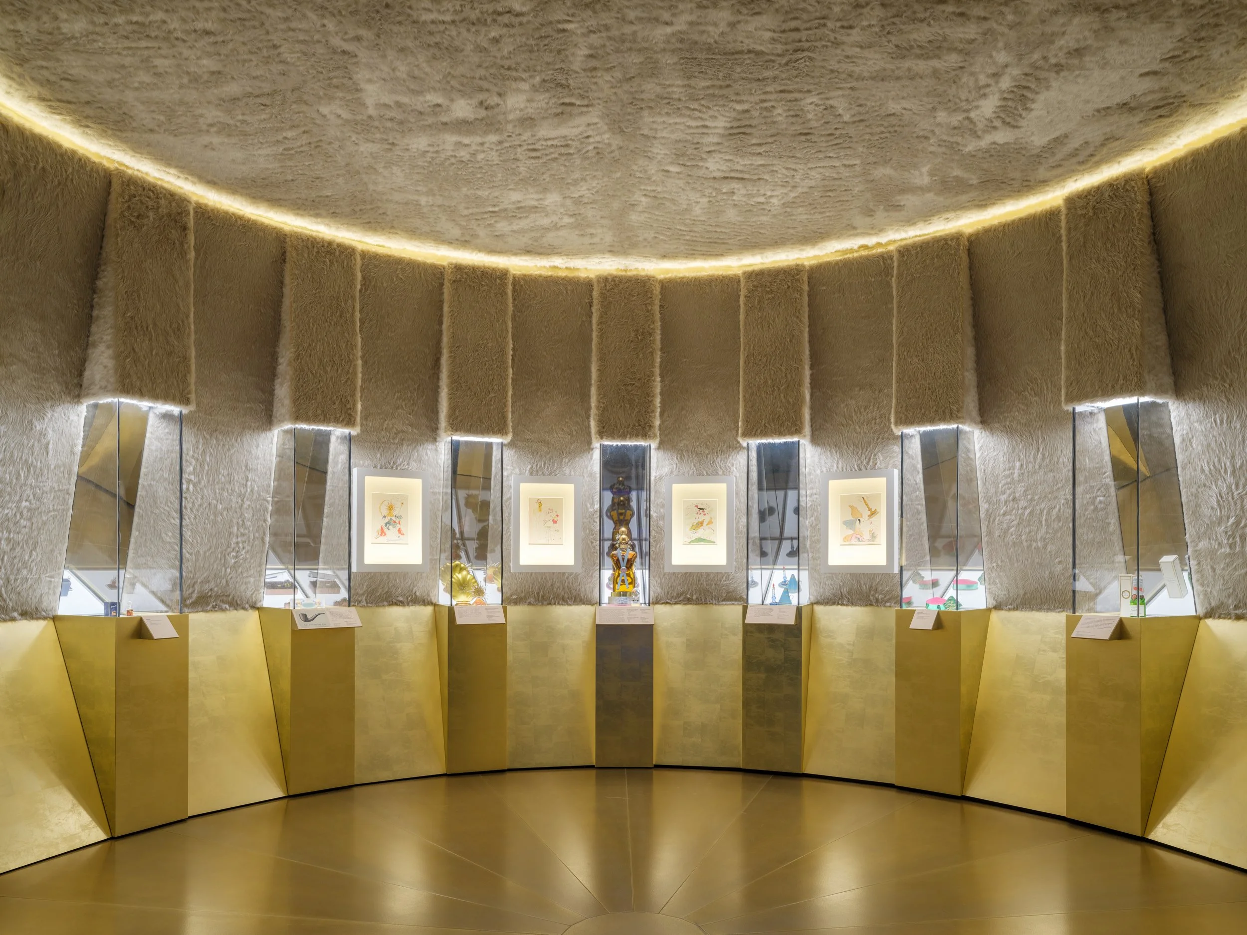 Integrated linear LEDS within the bespoke joinery illuminated viewports, uniformly lighting the varying product types. The aesthetic approach is consistent across the different shops, located on the first and third floor. Wireless lighting control allows event, workshop and nighttime scenes to be set creating ambient levels and additional flexibility to the spaces.